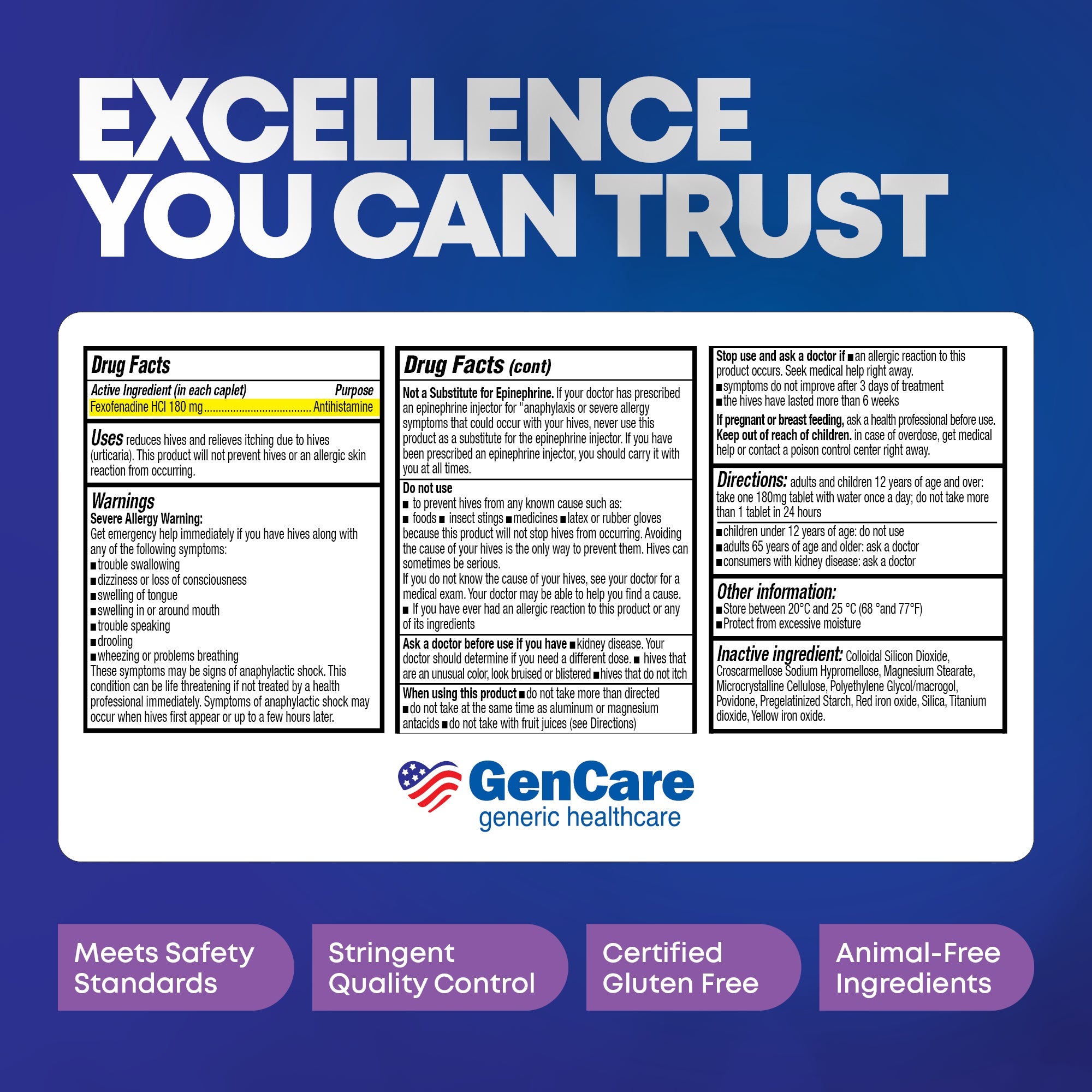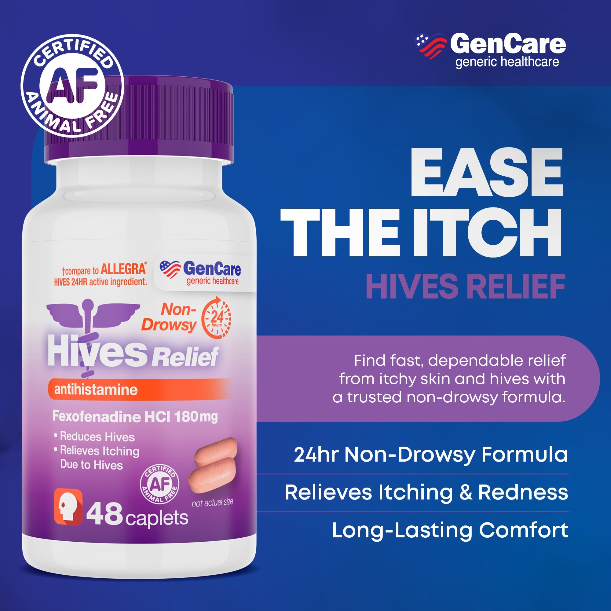 Fexofenadine HCl 180 mg Hives Allergy Relief Tablets, Non-Drowsy Antihistamine — Compare to Allegra® Hives, 48 Tablets