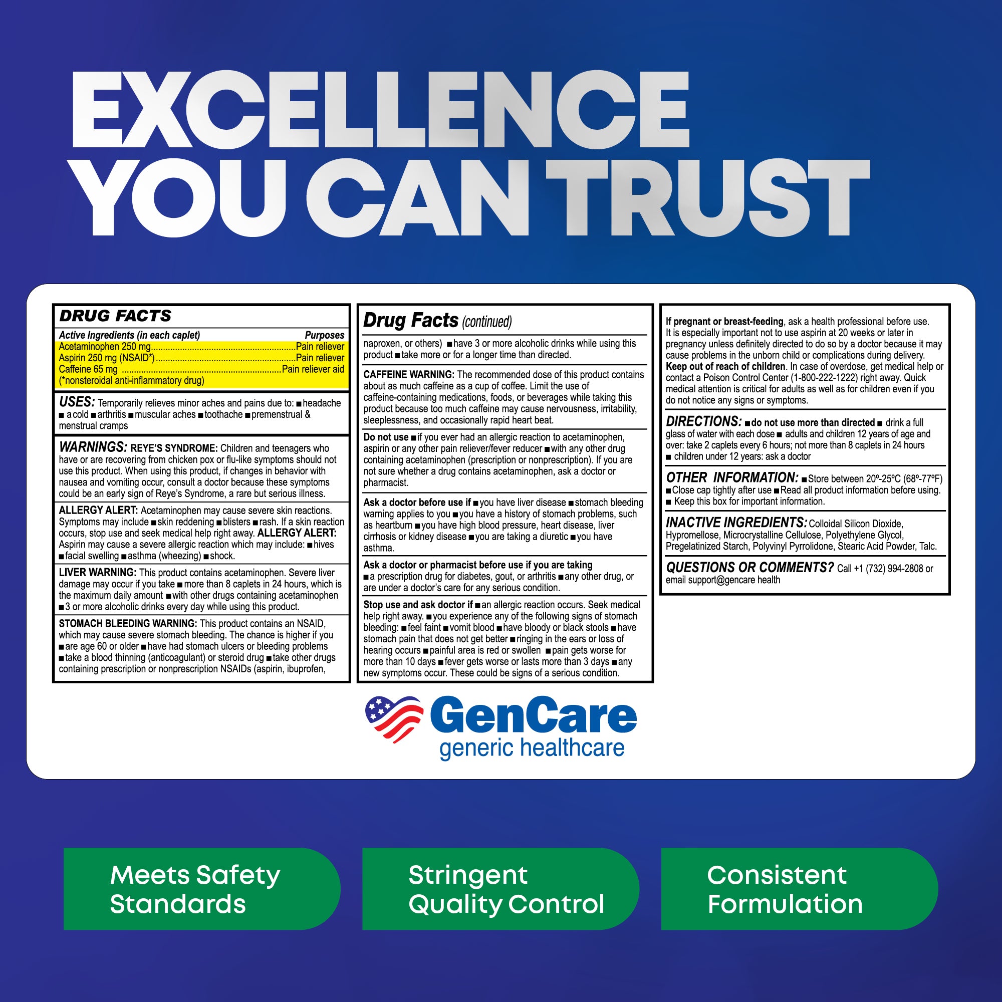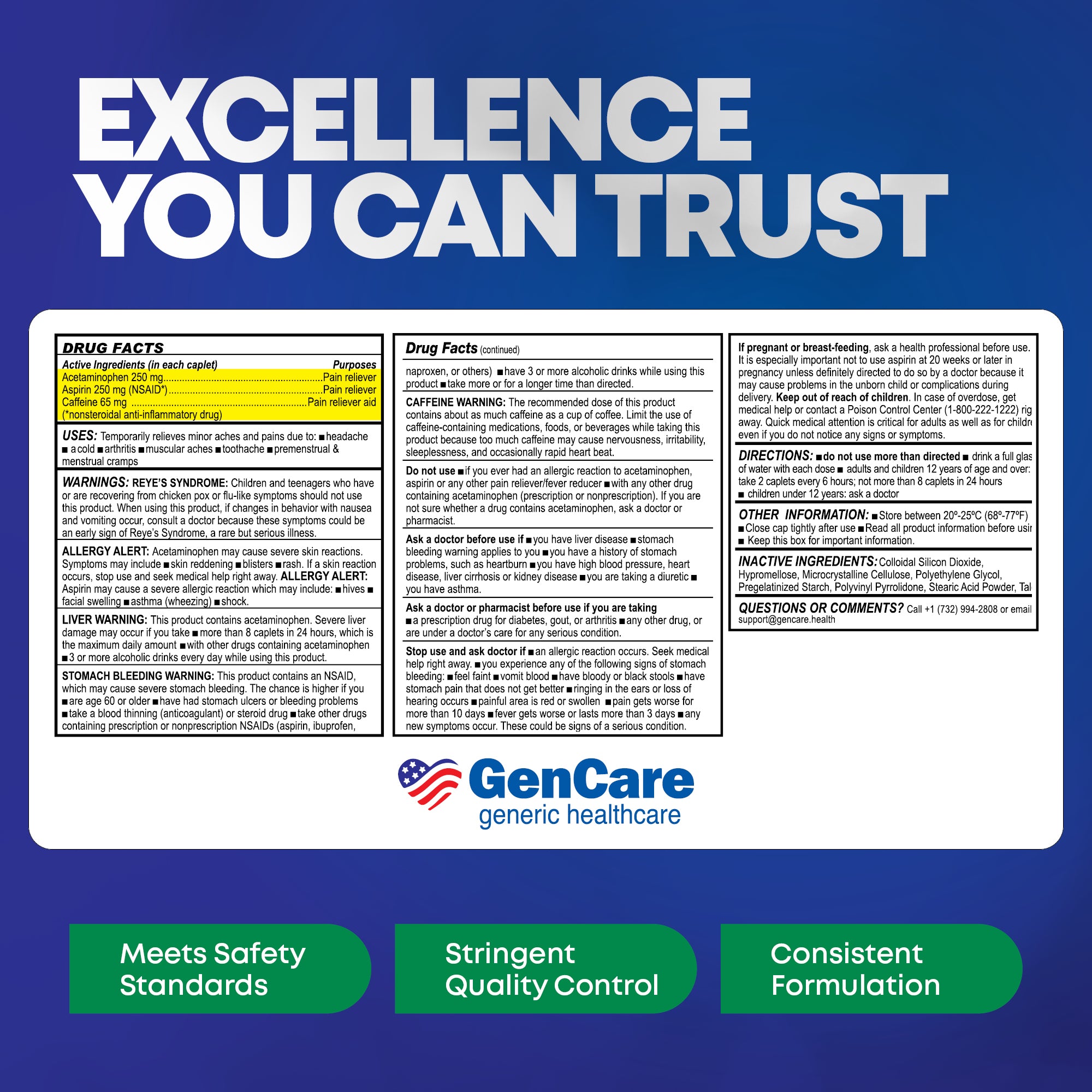 Acetaminophen 250 mg, Aspirin 250 mg , Caffeine 65 mg