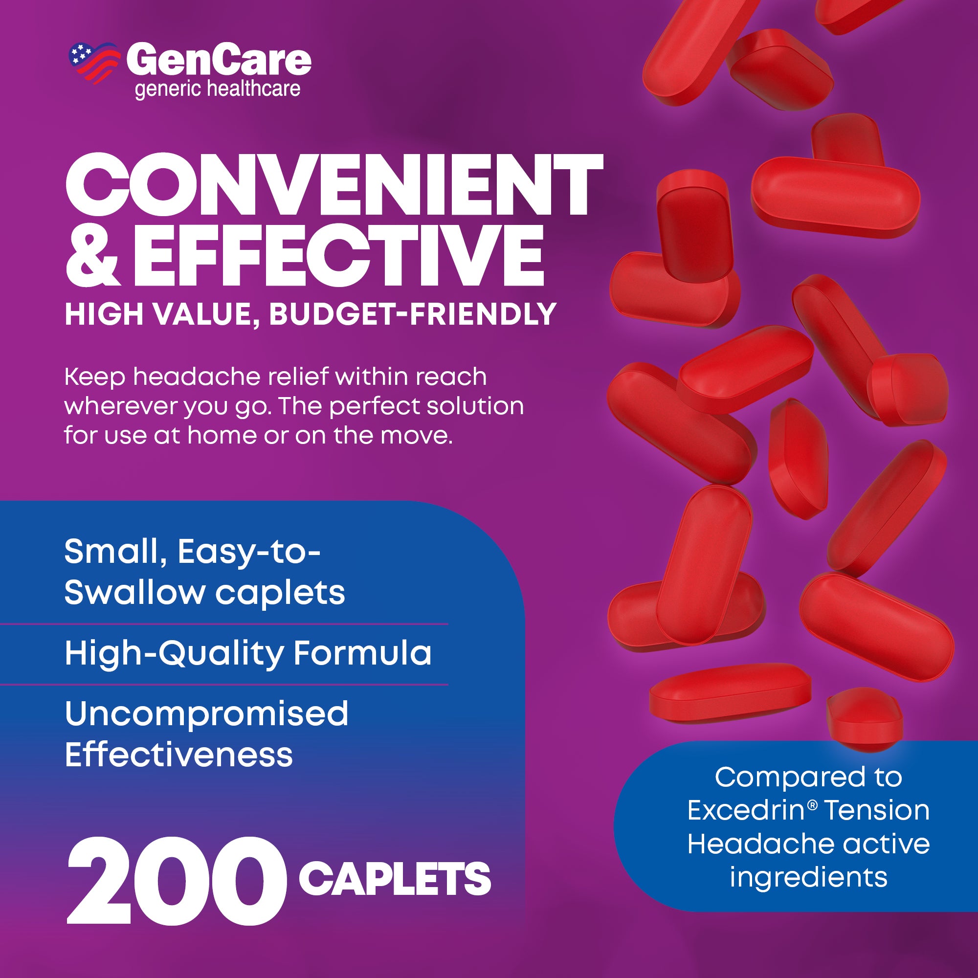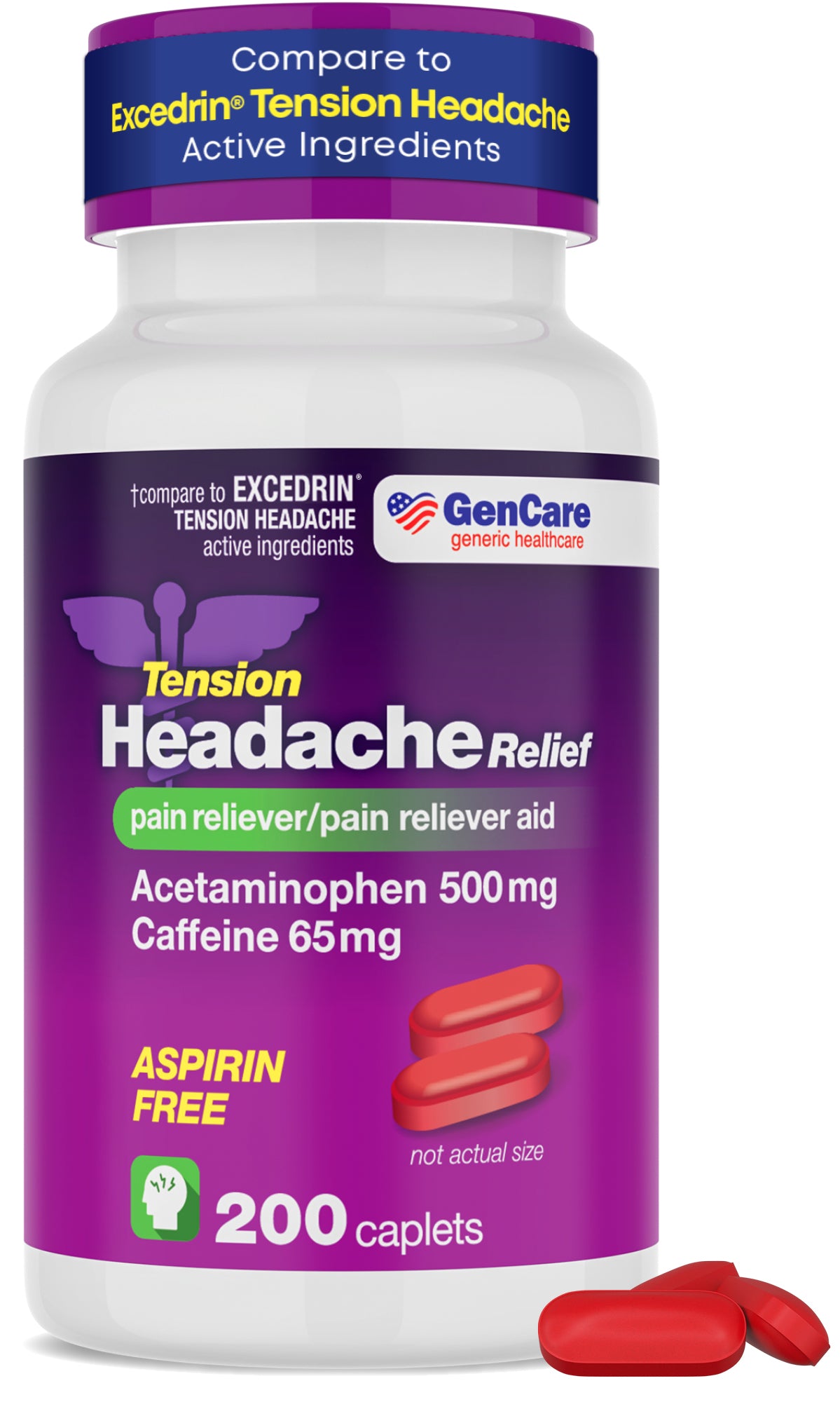 Tension Headache Relief Caplets with Acetaminophen & Caffeine — Compare to Excedrin® Tension Headache, 200 Caplets