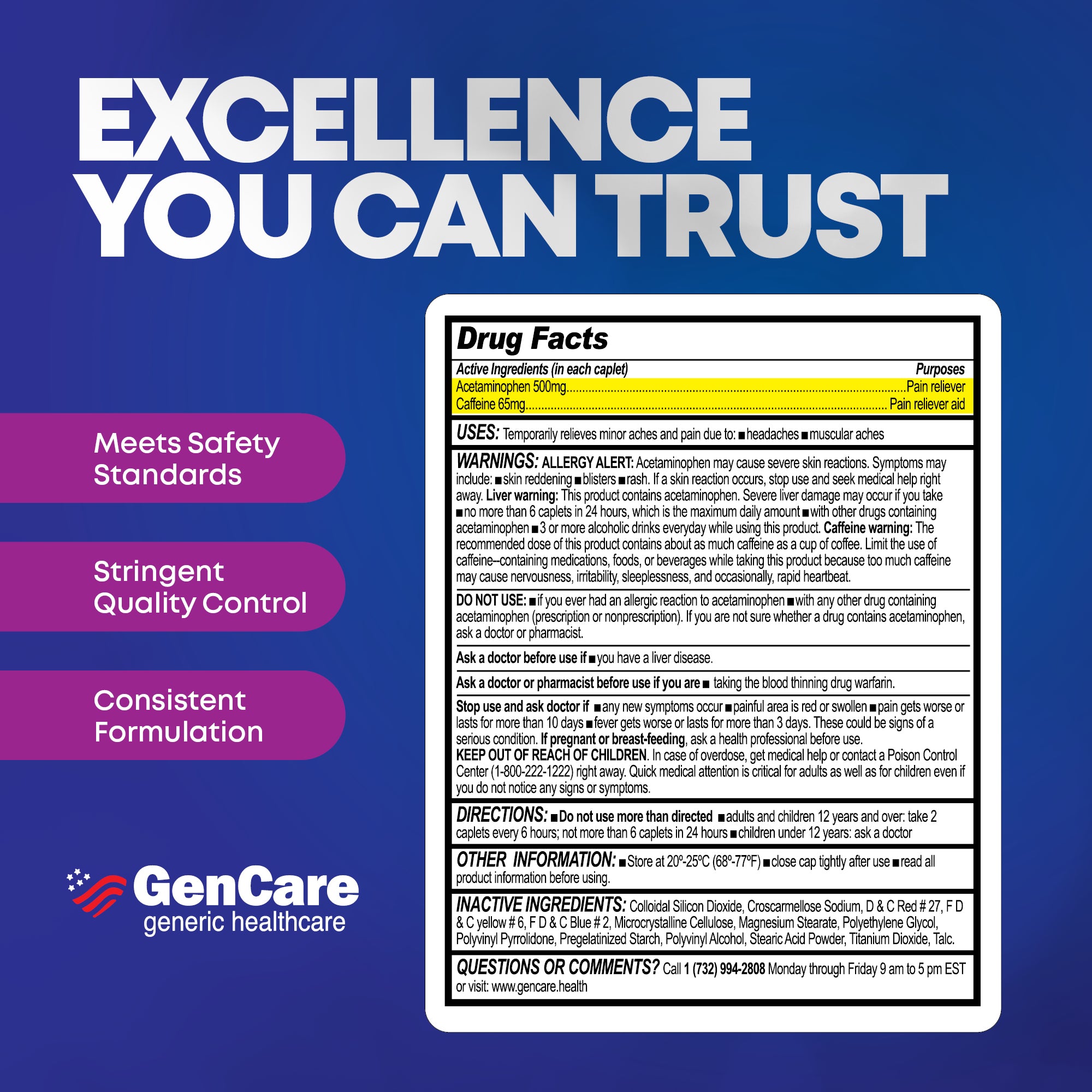 Acetaminophen 500 mg, Caffeine 65mg