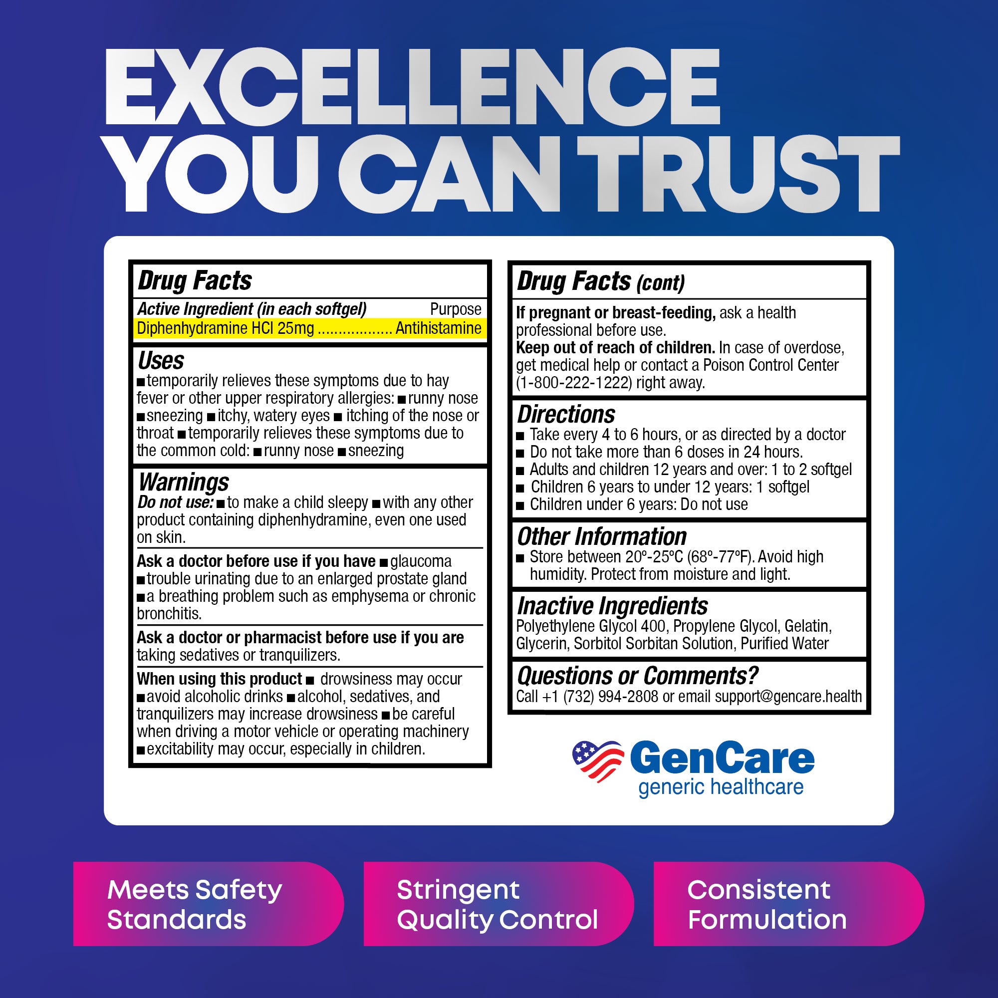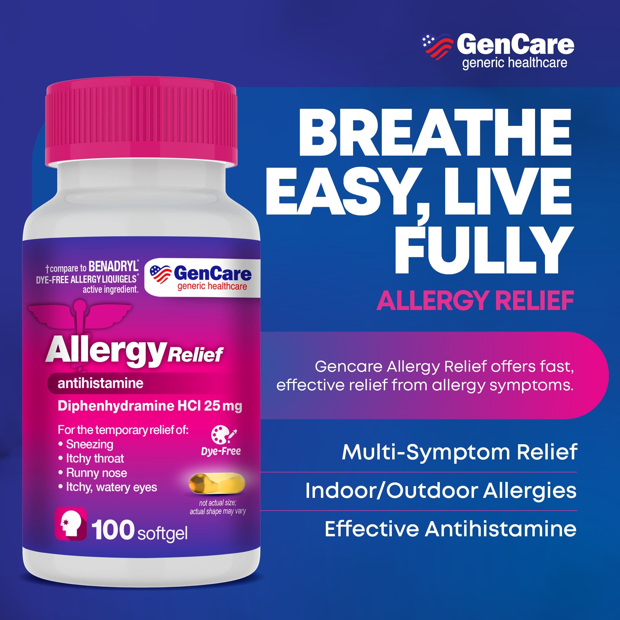 Diphenhydramine HCl 25 mg Allergy Relief Softgels, Dye-Free — Compare to Benadryl® Liqui-Gels® Dye-Free, 100 Softgels